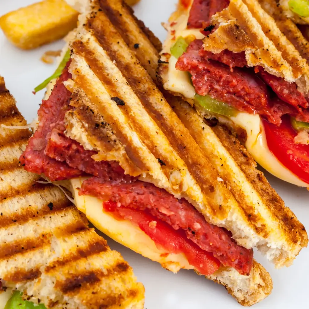 Kaşar peyniri ve sucuk ile hazırlanmış lezzetli tost.