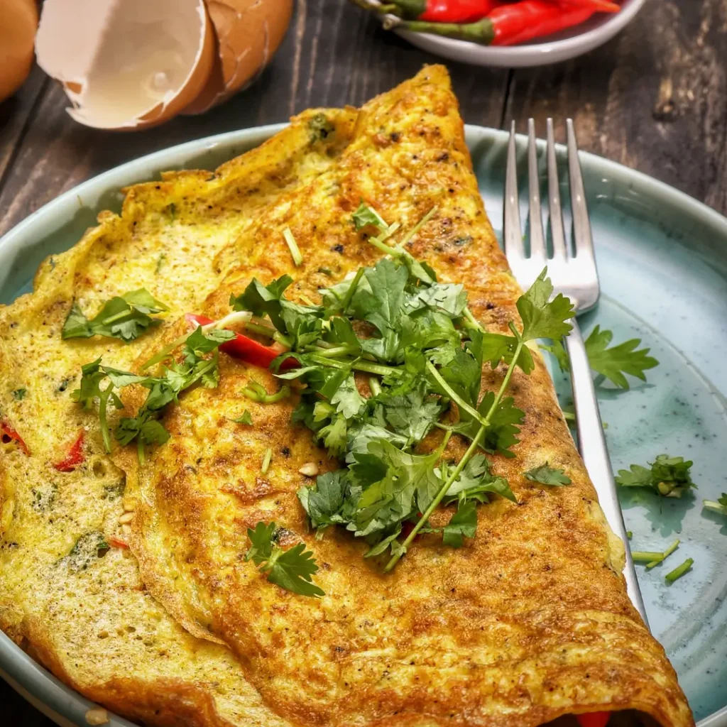 Kapya biberi yeşil biber ve maydonoz ile hazırlanmış yumuşak omlet; hafif, doyurucu ve lezzetli bir seçenek.